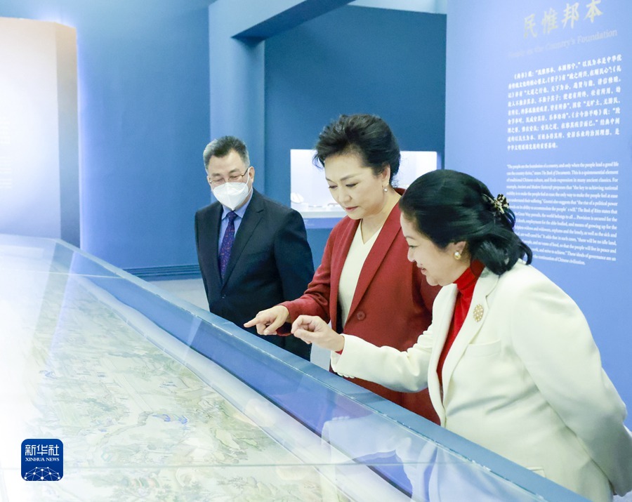 1月4日,国家主席习近平夫人彭丽媛与陪同菲律宾总统马科斯对中国进行国事访问的总统夫人丽莎共同参观中国国家博物馆。新华社记者丁林摄 新华社北京1月4日电 4日下午,国家主席习近平夫人彭丽媛与陪同菲律宾总统马科斯对中国进行国事访问的总统夫人丽莎共同参观中国国家博物馆。 在国家博物馆馆长陪同下,两位元首夫人一同参观了由中国国家博物馆和故宫博物院联袂推出的“和合共生——故宫·国博藏文物联展”。展厅陈列的青花开光花鸟图菱花口折沿盘等400余件中国历代文物藏品精美绝伦,生动展现了中华文明深厚的历史底蕴和中华民族“尚和合、求大同”的价值追求。