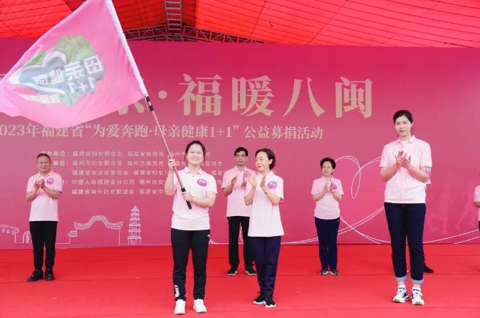 由省妇联、省体育局和福州市政府共同主办的“关爱母亲·福暖八闽”——2023年福建省“为爱奔跑·母亲健康1+1”公益募捐活动昨日举行。省委常委、常务副省长、省妇儿工委主任郭宁宁出席活动,现场带头捐款,为爱心单位颁发荣誉奖牌,为领跑嘉宾颁发爱心公益大使证书、授旗并参加健康跑。