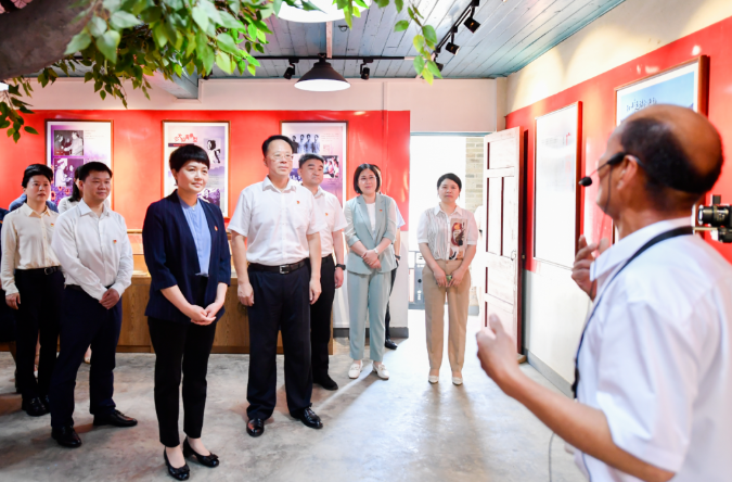 陈红在致辞中希望税务巾帼要凝心聚力,扎实开展主题教育,在学思践悟新思想中激扬巾帼之智;要牢记“国之大者”,主动作为,把最美的芳华绽放在税收事业的舞台上;要充分发挥妇女在社会生活和家庭生活中的独特作用,以及在弘扬中华民族家庭美德、树立良好家风方面的独特作用,为推动形成社会主义家庭文明新风尚展示巾帼风采。 “牢记总书记嘱托 税务巾帼建新功” 主题教育实践活动 分“追寻足迹学思想 以学铸魂强根基” “牢记嘱托聚合力 税务巾帼绽芳华” 两个篇章进行 第一篇章 “追寻足迹学思想 以学铸魂强根基” 与会人员跟随习近平总书记在小松镇穆墩村调研指导的足迹,参观知青博物馆,体会知青“到农村去”“到广阔的天地去”的豪情壮志;参观“双带双创”展示馆,深刻领会发挥“党建举旗定向”作用的重要性。
