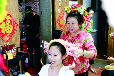 8月8日,福建省泉州市蟳埔村村民为游客簪花。新华社记者陈为/摄 蟳埔村位于福建省泉州湾晋江入海口,蟳埔女簪发戴花的古老民俗被称为“簪花围”。2008年,以“簪花围”为代表的蟳埔女习俗被列入第二批国家级非遗名录。自去年起,原本安静的小渔村随着网络上“簪花围”的出圈而热闹起来,带火了当地文旅产业。 近年来,在福建省妇联指导下,泉州市妇联认真贯彻落实全国妇联关于促进女性创业就业的部署要求,把助力打造国家级非遗蟳埔女“簪花围”文化特色产业作为妇联组织服务中心发展、服务妇女群众的有力抓手,探索推动妇女创业就业与文旅产业发展、与非遗文化传承、与美好生活向往“三个深度融合”的妇女发展新路径,积极带动当地妇女学习簪花技艺,实现家门口就业增收。 眼下,千年渔村蟳埔村形成了“三个90%”,即文旅从业人口90%是女性、服务对象90%是女性、文旅收入90%是女性创造的生动局面。去年,蟳埔村节假日日均游客人数超5万,全年旅游总收入超6亿元,村民银行存款增加2.43亿,村民人均收入翻倍。 “妇女帮帮团+”产业模式,开展簪花技艺培训和大赛 蟳埔女的头饰,不仅是游客头顶上“移动的花园”,更是当地勤劳妇女手中充满力量的“共富花”。 “漂亮的女孩都来蟳埔了,簪花的老手艺成了创业的金钥匙!”王秀娟(化名)曾是蟳埔社区的低保户,如今她的生活在繁忙中悄然改变。在妇联组织带动下,她乘着蟳埔村“爆红”这股热潮,联合留守在村里挖海蛎的亲戚妯娌学习簪花技艺,开起了家族簪花围店,旺季时每天接待游客上百人,店铺日均收入破万元,带领全家走出贫困。 王秀娟并非个例。泉州市妇联抓住蟳埔女“簪花围”热潮火爆全国的有利契机,对接人社、商务等部门,聚焦“簪花围”出圈后产业链发展缺人手、缺技术的“痛点”“堵点”,开展“簪花”、化妆、摄影、直播等培训,把技能送到人、把岗位送到户。 仅去年,泉州市丰泽区以“妇女帮帮团+”产业模式,开展簪花技艺、化妆摄影等创业技能培训50多场次,培训妇女2000多人次,参与蟳埔文创产品展示走秀、蟳埔簪花大赛等活动56场次,把妇女有效凝聚在产业链上,打通蟳埔妇女创业就业“最后一公里”。 “巧妇难为无米之炊”。聚焦蟳埔妇女创业融资需求,泉州市妇联联合省农信联社泉州办事处出台金融政策礼包,推出“巧妇贷”“鲤福贷”等专属服务。去年泉州市单列15亿元专项信贷资金,利率下调30个基点的优惠,累计提供创业贷款30多亿元,新增巾帼示范基地、巾帼文旅项目授信1个亿,让女性创业更有“底气”。 此外,福建省妇联推动将“保护灵活就业和新就业形态女性劳动者权益”内容写入新出台的《福建省妇女权益保障条例》。泉州市妇联成立蟳埔女调解中心,联动公检法等部门持续推进蟳埔女调解员公益维权关爱服务,去年蟳埔村化解婚姻家庭、邻里矛盾、渔业纠纷等30余起,为50余名妇女和家庭提供法律援助、心理咨询、家教指导等精准服务。 推动“网红”变“长红”,传播文化和家风 将长发盘在脑后,插上骨髻、鱼梳、发簪,戴上一圈圈鲜花、小花和边花,就形成色彩斑斓、造型别致的“簪花围”。 “从小家里的长辈们告诉我,再苦再累,只要头上有花,日子就不会太苦。簪花围承载的是千年渔村生生不息的文化、精神和力量。”泉州蟳埔女文化传播大使、丰泽区三八红旗手黄丽泳是地地道道的蟳埔村人,从小耳濡目染学习簪花,在她看来,这一代人有责任传承和推广这项文化遗产。目前由她创作开发的晴天姐姐蟳埔女文创系列产品正在筹备中,她希望用文创产品继续讲述蟳埔文化故事。 为推动“网红”变“长红”,泉州市妇联在第十六届海峡妇女论坛、“数字福建”峰会等大型活动现场举办两岸妇女簪花体验、女企业家簪花联谊等活动,助推亮相中国金鸡百花电影节等32场重要活动,参与举办驻华外交官走进蟳埔等37场推介活动,带动更多蟳埔妇女传播非遗声音和文化。 为了把产业和文化有效结合起来,泉州市妇联整合蟳埔簪花围民俗文化协会等多方力量,为蟳埔妇女就业服务注入优质的资源、多元的支持和坚定的信心。仅蟳埔这个三面环海的小渔村,一年内,“簪花围”“摄影”“文创”商家猛增至200余家,泉州银行蟳埔网点2023年增加存款2亿元。 把传统和规范有效衔接起来,泉州市妇联联动文旅、商务等部门积极指导蟳埔簪花围民俗文化协会发布全国首个非遗团体标准《蟳埔女习俗“簪花围”服务规范》,推动制定“簪花围”行业规范经营、蟳埔“大裾衫、阔脚裤”民俗推广等13条邻里守则,搭建社区“娘家人”议事会、参事会等平台,带动妇女注册蟳埔、簪花围商标、版权,形成内部自律机制和可复制可推广“样板”,以标准化引领和支撑“簪花围”文旅巾帼特色产业高质量发展,带动妇女用艺术讲好中国故事、彰显女性力量。 同时,泉州市妇联把家风和文化有效弘扬开来,立足蟳蜅女这一“福建三大渔女”之一的中华优良传统特色,开展“弘扬蟳蜅女精神簪花围下画家风”主题活动,开设“蟳埔故事讲堂”,举办“蟳埔家风”故事会,努力让国家级非遗“蟳埔女”文化既传统又时尚,既能弘扬传统文化,又能用产业扶贫和振兴乡村。 组建“娘家”队伍,讲好“蟳埔女”故事 蟳埔媳妇蒋玲玲来自湖北,她与女儿黄馨怡以蟳埔女的形象陆续出现
