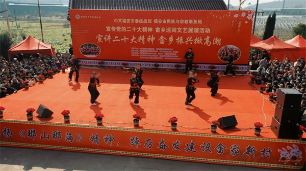 不过,传承弘扬畲家拳,让这一“非遗”项目走出畲家村寨,进入更多人的视野,单靠个人的努力是不够的,需要全社会的关注和支持。乘着新福建建设东风,福安市先后投入了6000多万元加强少数民族特色村寨建设,从2019年起,每年还安排了200万元专项资金,用于畲族文化建设。 在政府的带动支持下,钟团玉建起了金斗洋村少数民族传统武术体育训练基地,成立了畲族武术协会,还编排了畲家拳节目进行展演。通过这些演出,金斗洋村的畲家拳很快打响了知名度,许多游客慕名来到村里。在福安有关部门的支持下,钟团玉又带领村民发展起了乡村旅游。