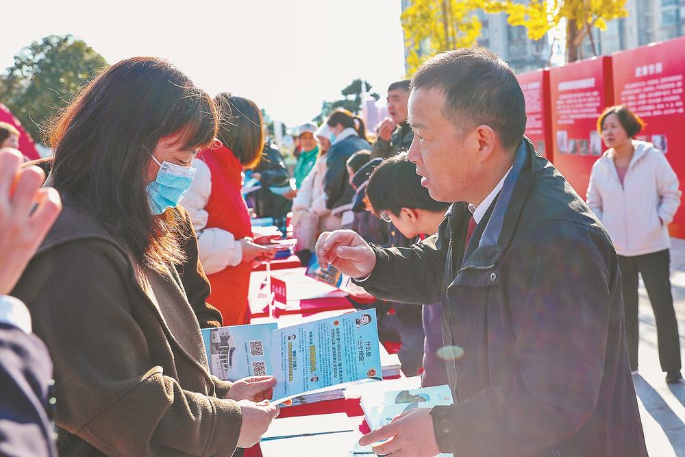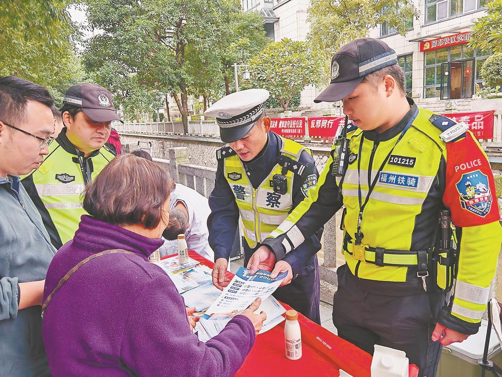 4日,福州市鼓楼区屏东社区党委联合共建单位组织志愿者在屏东河边开展“法治同行 志愿共筑:创造社区美好生活”主题活动。图为市民在现场了解法规知识。林爱玲 游庆辉 摄