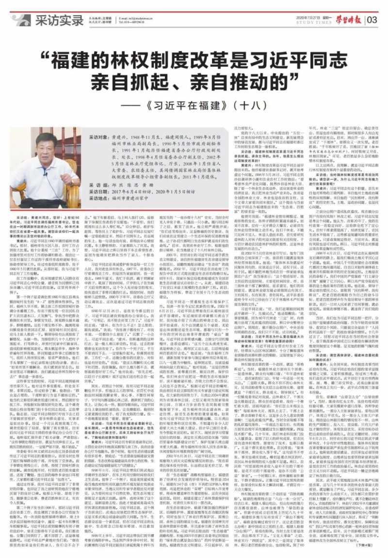 采访对象:黄建兴,1948年11月生,福建闽侯人。1989年8月任福州市林业局副局长,1990年5月任市政府副秘书长,1991年1月起历任福建省委办公厅行政处副处长、处长,1998年4月任省委办公厅副主任,2002年5月任省林业厅党组书记、厅长,2008年1月任省人大常委、农经委主任,其间借调国家林业局任集体林权制度改革领导小组常务副组长。2011年1月退休。 采访组:邱然 陈思 黄珊 采访日期:2017年6月4日初访,2020年1月5日核访 采访地点:福州市黄建兴家中 采访组:黄建兴同志,您好!上世纪90年代初,习近平同志调任福州市委书记,您也在这一时期调到市政府办公厅工作,90年代末你们又在省委一起共事。请您谈谈你们一起共事的情况以及您对他的印象。 黄建兴:习近平同志1990年调任福州市委书记。那时,福州市有五区八县,农村工作占到很大比重。他十分重视“三农”工作,为了加强市里对农村工作的协调和推动,提出让一位农村基层工作过的干部任市政府副秘书长,协助市领导工作。经过市委组织部推荐,我于1990年5月就任此职。从那时起,我与习近平同志有了工作接触。 在工作接触中,我深刻感受到人民群众在习近平同志心中的分量,感受到为民情怀已经深深融入习近平同志的血脉。这里列举两个例子。 第一个例子是妥善处理1990年连江县琯头镇官岐村发生的“8·2”恶性群体性事件。当时,福州久旱不雨,镇上派工作组到官岐村协调分水灌溉工作,有名干部发现一位农民私自扩大农田进水口,大发脾气,争执当中把群众推倒在水田里。事情发生后,围观群众越来越多,群情激愤。这名干部见势不妙,跑离现场向镇党委负责同志汇报,说官岐村农民造反,应马上派人教训一下。镇领导没有认真细致了解情况,头脑一热,当即组织几十个人把村子围起来,打骂群众,冲到村民家中打砸家具,造成的影响极其恶劣。琯头镇是侨乡,海外华侨遍布世界各地,侨民知道这件事之后都很生气,组织人到市里反映,要求严肃查办。他们手头掌握了一份记录现场过程的录像,表示:“如果市里不能解决,我们就到省里去告。如果省里还不能解决,我们就通过侨界告到中央去!”事态进一步恶化。 这件事发生的时候,习近平同志刚到福州市任职不久。他对这件事很重视,但处变不惊、非常沉稳。经过初步了解,他指出:“群众是占理的,干部野蛮行为是不能容忍的。”他当机立断组织调查组进行核实,然后做好安抚工作,再根据实际情况研究处理。这个调查组由公检法等部门的十多位同志组成,让我带队。临走前,习近平同志特别叮咛我下去之后不要搞官官相护,要多听群众意见,实事求是依法办事。经过一个月认真细致地工作,调查组稳住了局面,掌握了真实情况,回来后向习近平同志主持的市委书记办公会作了汇报。他听取汇报并看了相关录像,严肃指出:“这件事情处理的宗旨,就是为民伸张正义。对欺压百姓的官员,一定要严惩不贷,绝不姑息。” 市委秘书长林文斌同志向连江县委县政府传达了习近平同志的重要指示。县里及时处理了殴打侮辱群众的干部,并安抚了受害者。由于事情处理得公正、合理,得到了官岐村群众的谅解。调查组离开时,村里的老百姓夹道欢送,还放了鞭炮,连江县的海外乡亲也口耳相传,大家都称道习近平同志是“包青天”。 通过这件事,我对习近平同志留下了非常好的印象,也印证了我之前听到的他在宁德地区留下的良好口碑。他那么年轻,却敢于担当,能够秉公处事,替老百姓伸张正义,实在令人钦佩。 第二个例子发生在1998年,那时习近平同志在省委工作,我也调到了省委办公厅直接为他服务。有一次我陪他到福清市调研,晚上8点多返回福州市区途中,遇见一起卡车和摩托车相撞事故。习近平同志看到骑摩托车男子倒在血泊中,要求立即停车下去看看。我们都劝他,交警已经到位了,就不用管了,还是继续赶路吧。习近平同志严肃地对我们说:“倒在那里的如果是你们的亲人,你们会不会下去。”他下车察看后,马上叫人拨打120,接着俯下身握住伤者的手安慰他:“不要怕,我们周围有这么多人帮忙呢。”10分钟后,救护车赶到,等伤员上了救护车,习近平同志反复叮嘱一定要抢救过来,然后才回到车上。在返城的车上,他一句话也没有说,看得出来心情很沉重。车上静悄悄的,大家都陷入了沉思。我想,习近平同志之所以坚持下车去看望伤者,是因为他确实把群众当作了亲人,十指连着心。 习近平同志还真诚爱护着身边每一位工作人员,我对此也深有体会。1987年,省委办公厅要调我去工作,但是因为家庭原因,我一直没去。1988年夏天,我忙于抗洪,疏于照顾家中孩子,耽误了医治时间,17岁的儿子在生病17天后突然离世。这个令人无法接受的现实,给我造成了非常沉重的打击。那段时间,我的精神几近恍惚。1990年下半年,省委办公厅又动议调我去,这次是通过习近平同志做我的工作。 1990年12月26日,是我至今难忘的日子,习近平同志请我到他的办公室谈心。我说:“习书记,我不想去省里工作了。”习近平同志说:“建兴,你为什么不去?怎么想的,跟我说说。”我说:“我连孩子都没有了,对我来说,一切都没什么意思了。”沉默了一小会儿,习近平同志说:“建兴,你所遇到的这种打击,是一般人难以承受的。但是,过去的事情谁也无法改变了。你作为一个男子汉,千万不要消沉下去,一定要振作起来。你调到省里面,工作