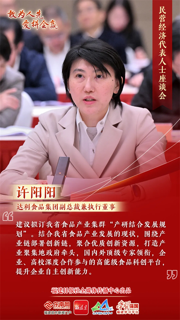人勤春早,爱拼会赢。 2025年春节开假上班第一天,福建省委、省政府在福州召开民营经济代表人士座谈会,向全省广大民营企业家致以新春问候,听取意见建议,为民营企业发展壮大加油鼓劲。 座谈会现场气氛热烈,18位民营企业家代表结合自身经历和企业发展情况,畅所欲言、传递心声。其中,郭韦苇、许阳阳、张西泠、朱静等四位女民营企业家代表,分别聚焦加快完善氢能产业链、打造高能级食品科创平台、自动驾驶技术研发项目补助政策、加快完善数字文旅产业支持体系等内容积极建言献策,贡献巾帼智慧和力量。