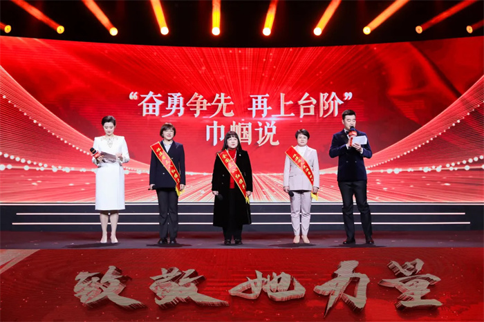 活动以“致敬她力量”为主题,围绕“奋进”“绽放”“逐梦”三个篇章,生动展现我省各行各业妇女和各级妇联组织沿着习近平总书记指引的方向,在新福建建设中同向发力、奋勇争先的动人风采,激励全省广大妇女在中国式现代化福建实践中奏响巾帼最强音、致敬最美她力量! 福建省妇联党组书记、主席林叶萍在致辞中表示,全省各级妇联要紧扣“奋勇争先、再上台阶”目标要求,持续深化拓展“三争”行动,深入推进“八闽巾帼五项行动”、重点办好服务妇女儿童和家庭“十件民生实事”、抓好抓实“四项改革任务”,团结带领全省妇女共同书写无愧新时代、建功新福建的八闽巾帼新华章! 八闽芳华,一路生花。4名巾帼宣讲员现场开启了巾帼讲席《八闽芳华录》,声情并茂讲述了福建女性在发展新质生产力、驱动海洋经济、激活文旅经济、助力基层治理等各行各业火热实践中的巾帼英姿。 巾帼亦有凌云志,又踏层峰辟新天。活动现场,福安市下白石镇党委副书记、镇长,全国脱贫攻坚奖奋进奖获得者郑月娥,福州市台胞投资企业协会会长,全国三八红旗手蒋佩琪,中科院福建物质结构研究所结构化学全国重点实验室副主任,中国青年女科学家奖获得者鲍红丽,聚焦“奋勇争先 再上台阶”主题,畅谈与改革发展脉动同频、与民族复兴梦想同行的奋斗故事。