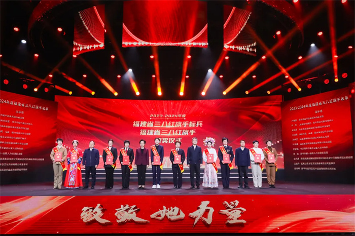 活动现场发布了万场家庭教育公益讲座“五进”活动、“福爱妈妈”结对关爱服务、“乐福嫂”巾帼家政、“顶梁柱母亲”帮扶行动等2025年福建省妇联服务妇女儿童和家庭十件民生实事,用一系列实实在在的惠民举措为妇女儿童的幸福生活添砖加瓦。 省委办公厅、省委宣传部、省委社工部、省委省直机关工委、省纪委监委驻省总工会机关纪检监察组、省总工会、省税务局、省广播影视集团等单位负责同志出席活动并为2023-2024年度福建省三八红旗手标兵、福建省三八红旗手、福建省三八红旗集体、福建省巾帼文明岗代表颁奖。