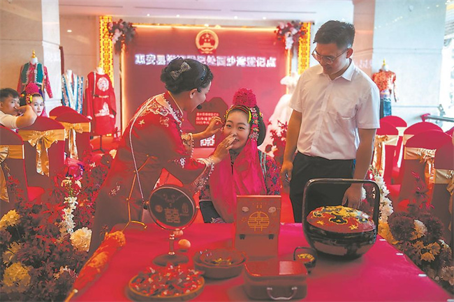 20日,惠安县在崇武镇开启“山盟海誓”520新人集体颁证活动,18对新人在别具闽南风情的婚俗文化中携手迈入婚姻殿堂。邓文祥 庄钊滢 摄