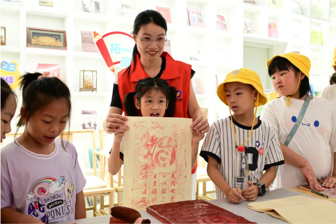 7月17日上午,一场别开生面的暑期儿童沉浸式阅读体验活动在全国首家福文化书店“福书轩”举办。活动以“福”文化开篇,现场琳琅满目的图书和衍纸、脱胎漆器、软木刻等非遗技艺的3000多个品类文创产品吸引着孩子们流连忘返。