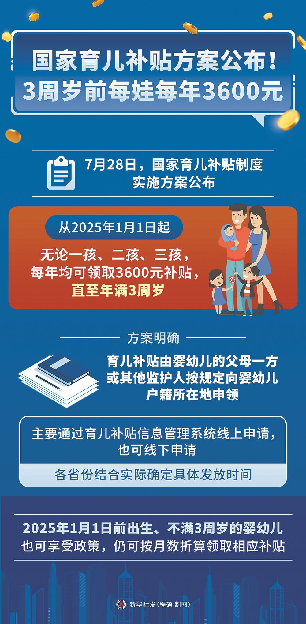 从2025年1月1日起,每孩每年发放育儿补贴3600元,至其年满3周岁——国家育儿补贴制度实施方案28日公布。这是一项全国性的重要民生政策,面向育儿家庭全国范围全面直接发放现金补贴,有助于缓解家庭养育压力。 哪些家庭可以申领育儿补贴?补贴标准为何如此设定?地方已有补贴政策怎样衔接?记者采访多位专家,对热点问题做出解读。 哪些家庭可领取育儿补贴? 根据方案,补贴对象为从2025年1月1日起,符合法律法规规定生育的3周岁以下婴幼儿。换言之,无论一孩、二孩、三孩,均可申领育儿补贴。 2025年1月1日前出生、不满3周岁的婴幼儿,也可享受政策,按应补贴月数折算计发补贴。 中国人口与发展研究中心主任贺丹表示,一孩、二孩、三孩均可领取补贴,且标准相同,实现了三孩生育政策下家庭支持的全面覆盖,体现了政策的普惠性和公平性。 首都经济贸易大学劳动经济学院教授姜全保认为,一孩生育是家庭生育决策的关键,将一孩也纳入补贴范畴,能一定程度帮助缓解年轻夫妇的生育顾虑。 育儿补贴怎样申领? 方案明确,育儿补贴由婴幼儿的父母一方或其他监护人按规定向婴幼儿户籍所在地申领,主要通过育儿补贴信息管理系统线上申请,也可线下申请,各省份结合实际确定具体发放时间。 据了解,相关部门正在抓紧推进各项准备工作。 国家发展改革委社会发展研究所研究员张本波表示,通过直达家庭的普惠性现金补贴,可以直接增加育儿家庭的可支配收入,提高获得感。 补贴标准如何设定? 根据方案,育儿补贴按年发放,现阶段国家基础标准为每孩每年3600元,中央财政按比例对东部、中部、西部地区予以补助。地方可根据财力适当提标,提标部分所需资金由地方财政自行承担。 中国财政科学研究院研究员朱坤分析,发达国家的育儿补贴标准各不相同,总体上看,每孩每年获得的补贴占该国人均GDP的比例通常在2.4%到7.2%之间。参考国际经验,我国育儿补贴标准占人均GDP的比例相对比较合理。 “坚持尽力而为、量力而行,育儿补贴政策方能行稳致远。”朱坤说。 地方已有补贴政策如何衔接? 方案要求各省份做好衔接规范。国务院发展研究中心社会和文化发展研究部研究员佘宇介绍,目前全国已有20多个省份在不同层级探索实施育儿补贴相关政策,亟待国家层面出台基础育儿补贴政策予以规范、指导和统筹。 姜全保说,在国家育儿补贴制度的基础上,地方政府可根据本地经济发展水平和人口发展特点,在财力允许范围内补充出台差异化补贴政策。通过中央与地方协同发力,形成多层次、立体化的生育支持政策。 育儿补贴预计有什么效果? 中国人民大学人口与健康学院教授宋健介绍,从国际经验来看,较早进入低生育社会的发达国家大多采取了发放育儿补贴的方式进行生育支持。在微观层面,育儿补贴对不同家庭生育的促进作用存在差异,但从宏观层面来看,总体上有利于提升生育水平或防止生育水平进一步降低。 不过,生育意愿的提升是一个长期过程,需要综合实施多种支持政策。 北京大学国家发展研究院副教授黄炜表示,仅靠经济补贴难以完全解决育儿问题,还需进一步完善托育服务体系和住房、教育等领域的支持政策。 首都经济贸易大学人口与发展研究中心教授茅倬彦说,育儿补贴制度在缓解育龄家庭现实困境、稳定生育预期、改善人口结构方面具有不可替代的作用,但它不是“万能钥匙”,应与产假、托育、教育、住房等政策形成联动,避免“单点突破”效果有限。 未来政策如何继续发力? 方案明确,各地区各有关部门要深入调研,广泛听取意见建议,评估育儿补贴制度实施情况,及时总结经验做法、完善政策措施。 佘宇认为,立足当前、着眼长远,国家育儿补贴制度为今后整合各种补贴形式、逐步提高补贴水平、与生育保险覆盖范围扩大的协同推进,同时也为建立覆盖儿童成长全周期的综合性育儿补贴制度,预留充足的政策空间。 中国人民大学人口与健康学院教授杨凡认为,在未来的发展中,应不断优化育儿补贴政策,完善生育支持政策体系,使其在增进民生福祉、促进国家可持续发展方面发挥更大的作用。 |
