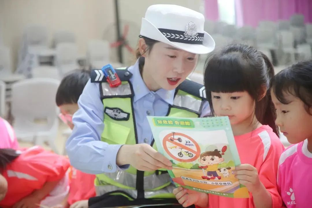孩子们专注学习交通安全知识。 在周宁县警宝托管班,女骑警队员正通过情景互动开展交通安全教育。课堂上,一双双高举的小手争先恐后地回答提问:“我知道!头盔就像安全卫士,会保护我们的小脑袋。”通过“一问一答”等趣味形式,交通安全知识化作一颗颗种子,悄然播撒进孩子们的心田。