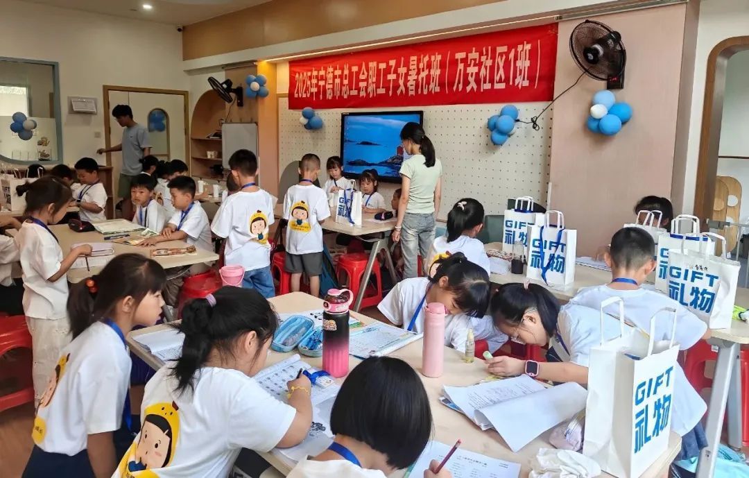 宁德总工会职工子女暑托班。 宁德各地充分发挥新时代文明实践阵地优势,联动高校志愿者、社会组织等力量,倾力培育“多彩公益课堂”“爱心托管班”“红领巾托管班”等特色项目,形成“阵地共享、资源互补、服务联动”的生动局面。这些扎根基层的暑托服务,既解决了家长的后顾之忧,更让新时代文明实践中心(所、站)成为孩子们暑期增智润心、快乐成长的“第二课堂”。 一场场暖心陪伴、一堂堂德育浸润、一次次成长助力,宁德市以文明实践为笔,绘就了一幅关爱未成年人的温情画卷。这场“宁”聚各方力量的暖心行动,不仅为孩子们撑起了成长的“绿荫”,更以文明之风浸润心田,筑牢他们向阳生长的精神根基。 |