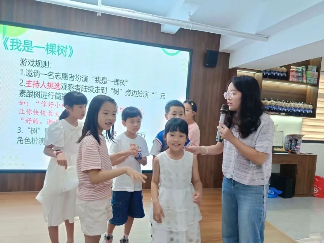 专业心理老师带领孩子们开展心理趣味小游戏。 心灵的守护同样温暖绵长。霞浦县松城街道万贤社区暑托班打造“心灵驿站”,专业心理老师正带领孩子们进行一场特别的“情绪探险”。“阙老师今天看到大家很开心,我的情绪温度大概是‘38度的温暖期待’!你呢?是平静的36°C?还是有点小兴奋的38°C?或是需要‘降温’的烦躁40°C?”在生动的比喻中,孩子们学会为情绪困境“开门解锁”,在游戏中找到化解烦恼的“心灵钥匙”。 “筑梦行动”点亮童心世界 从“文化传承”到“精神滋养” 如何让暑期活动既有趣又有益?宁德市给出的答案是深挖本土资源,让文化基因与红色血脉融入未成年人的成长轨迹。