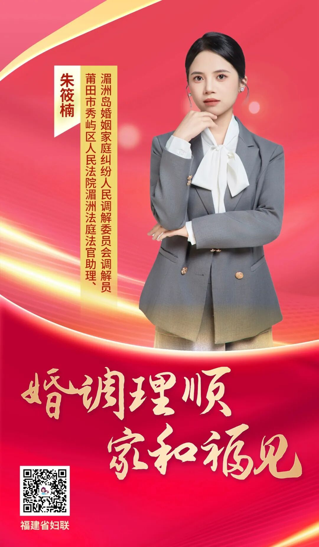 家和万事兴,法爱暖人心。当生活的褶皱里悄然生出小摩擦,总有一群人用专业与温度,为家庭撑起一片晴空。省妇联、省司法厅、省总工会联合启动婚姻家庭纠纷人民调解技能“大比武”活动,和闽姐姐一起走进“家和福见・我的调解故事”专栏。共同感受“婚调理顺 家和福见”的温暖微光,见证活跃在八闽大地的婚调员们的动人风采和生动实践。