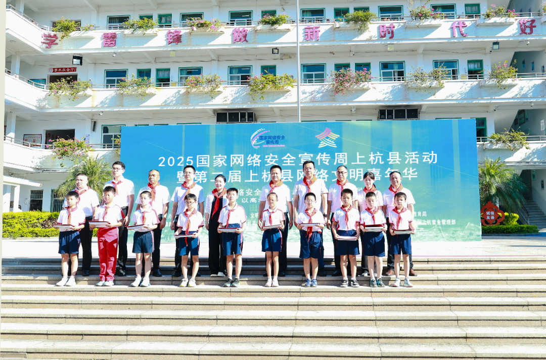 上杭县妇联联合有关单位举办2025国家网络安全宣传周上杭县活动暨第二届上杭县网络文明嘉年华活动,组织县实验小学“鑫鑫网络安全志愿服务队”的网络安全小卫士们进行校园宣讲、线上科普。