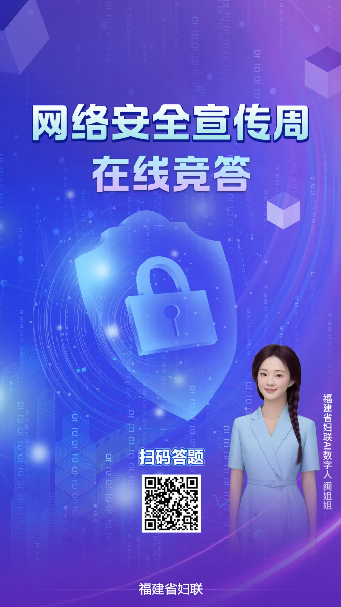 省妇联官方微信公众号“闽姐姐”上线网络安全知识答题H5,提升妇女群众网络安全意识,助力女性跨越数字鸿沟。 福州市