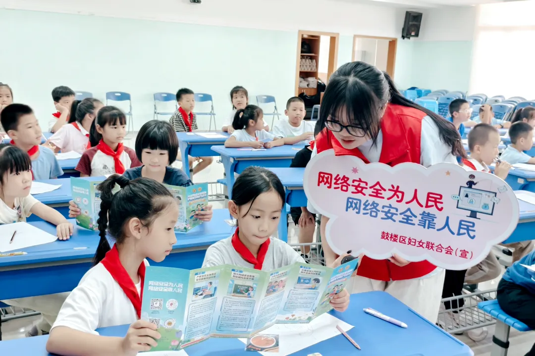 鼓楼区妇联携手海容社工走进福州市钱塘小学教育集团湖前校区开展网络安全宣传活动。巾帼志愿者向孩子们发放《未成年人网络风险防护指南》,生动讲解各类网络乱象的表现与危害。
