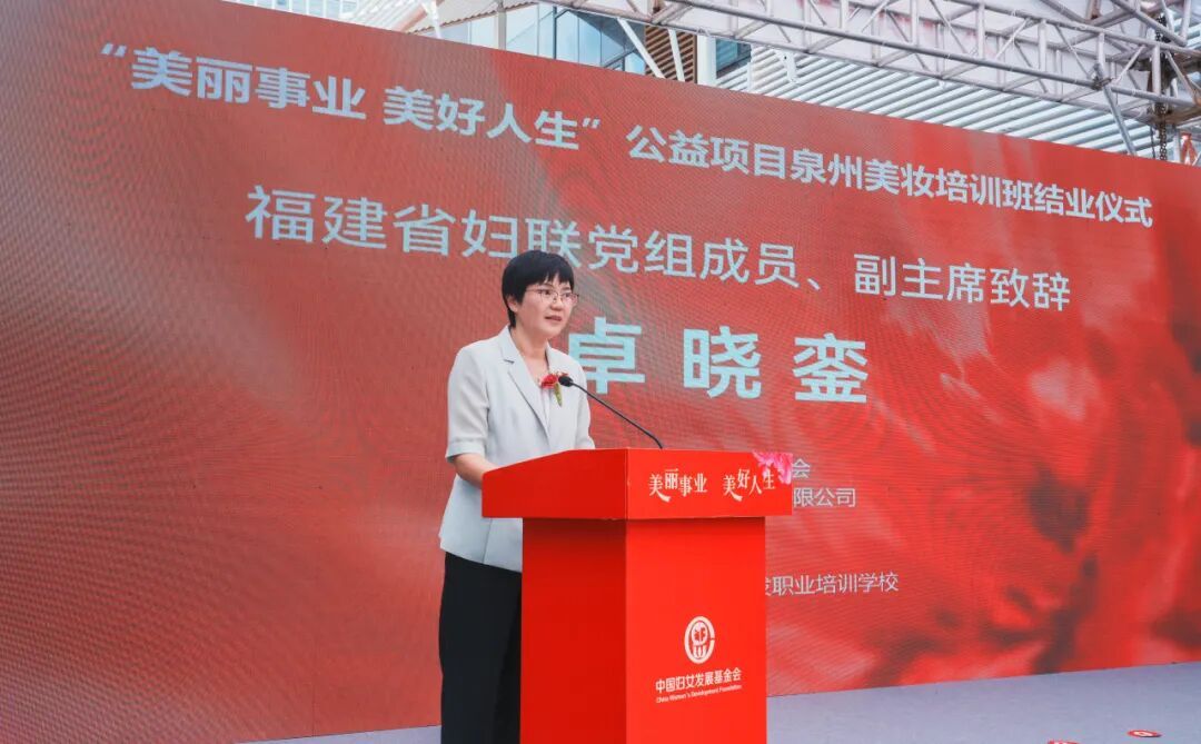 卓晓銮表示,此次,“美丽事业 美好人生”项目落地泉州,通过彩妆技艺、电商运营等系统培训,为“宝妈”“顶梁柱母亲”插上创业的翅膀,托举起“美丽事业”的梦想。她希望,完成学业的姐妹们能发扬“四自”精神,用技能点亮人生,用奋斗创造美好,将这美丽温暖的事业续写成助力巾帼梦想花开、爱润八闽的佳话。 打造“美丽驿站”,助推文化与经济协同发展