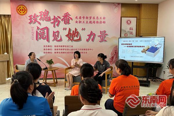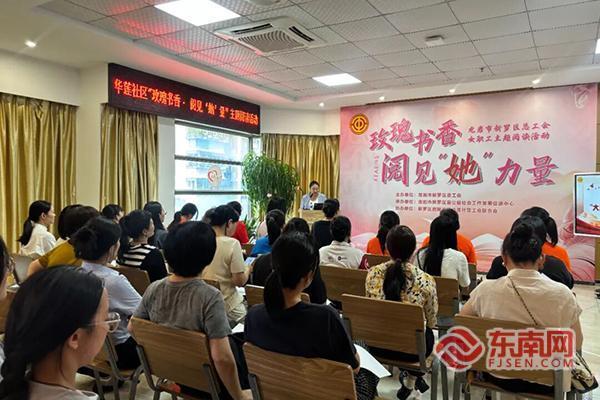 东南网龙岩9月27日讯 为激发女职工提升自我认知、增强心理韧性,引导女职工传承弘扬家庭文明新风尚,9月25日,新罗区西陂街道华莲社区联合新罗区总工会、壹公益社工机构共同开展“玫瑰书香・阅见‘她’力量”女职工主题阅读活动。活动通过主题讲座与茶话会相结合的形式,旨在为社区女职工搭建了交流学习、共同成长的平台,让女职工们在书香与交流中汲取奋进力量。 活动现场,“她时代的阅读答案”女性力量主题讲座率先拉开帷幕。社区特别邀请了资深心理学讲师来到现场,为女职工们带来了一场兼具深度与温度的知识分享。讲座中,讲师以经典书籍中的女性角色为切入点,带领大家走进文学世界里的“她力量”。讲师通过对《遇见未知的自己》中女性角色的剖析,让在场女职工深刻感受到女性身上闪耀的优秀品质。