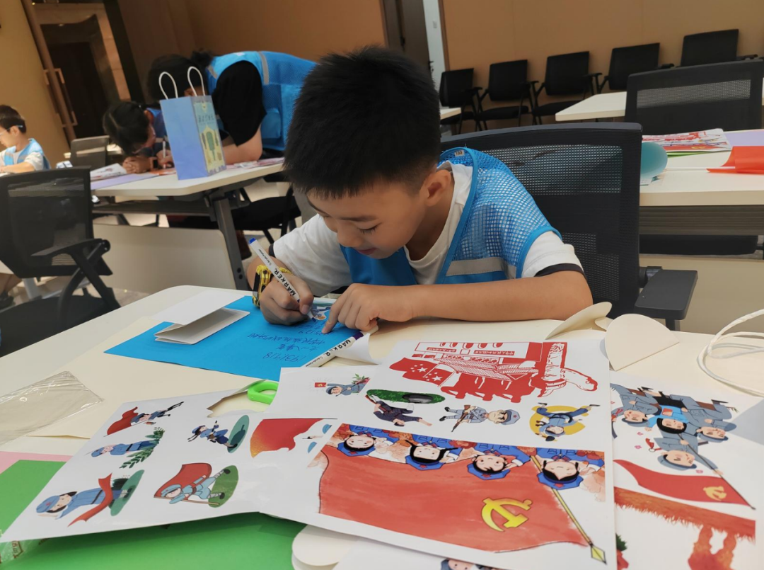 在稚嫩的笔触下,红色故事与家国情怀正被细细描摹。这一抹抹鲜艳的中国红,是孩子们对祖国的纯真礼赞,愿这份童心绘就的家国画卷在代代接力中愈发绚烂。