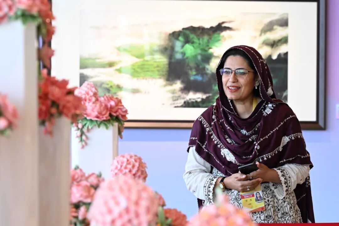 参会记者参观全球妇女峰会女性主题特展。中国妇女报全媒体记者 杨睿 摄