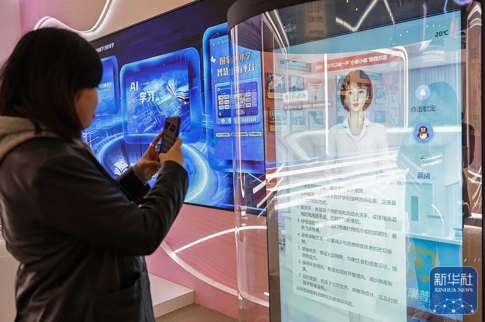 10月14日,一名观众在展览上拍摄AI互动显示屏。