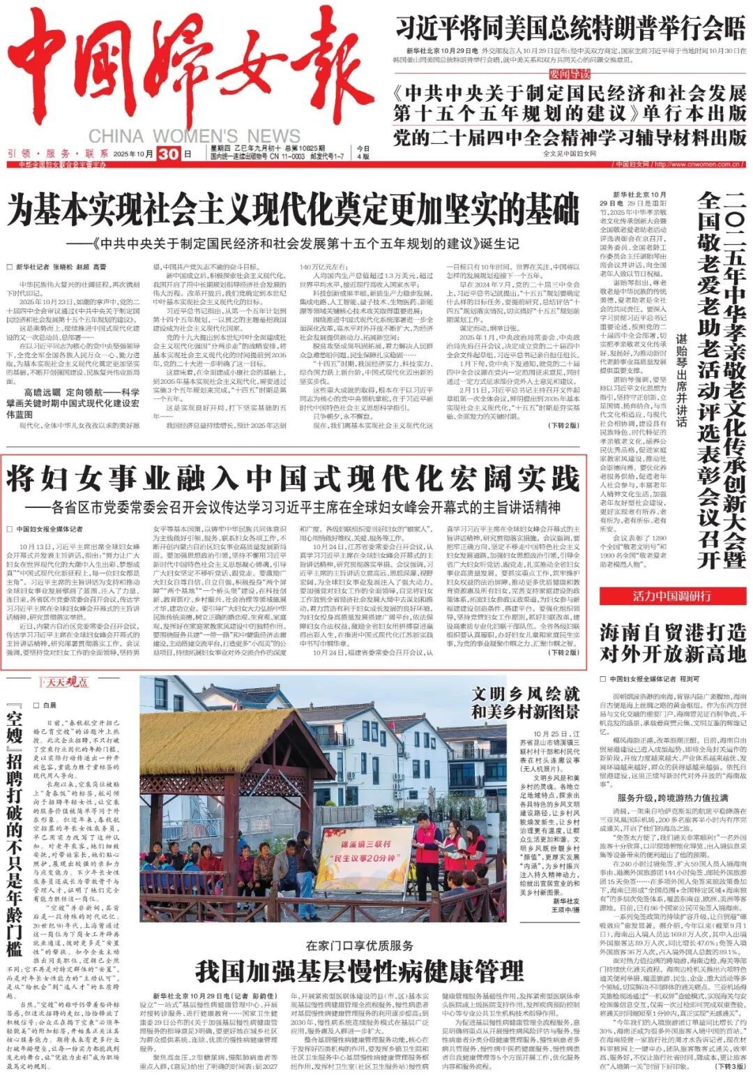 近日,《中国妇女报》头版刊发《将妇女事业融入中国式现代化宏阔实践——各省区市党委常委会召开会议传达学习习近平主席在全球妇女峰会开幕式的主旨讲话精神》。