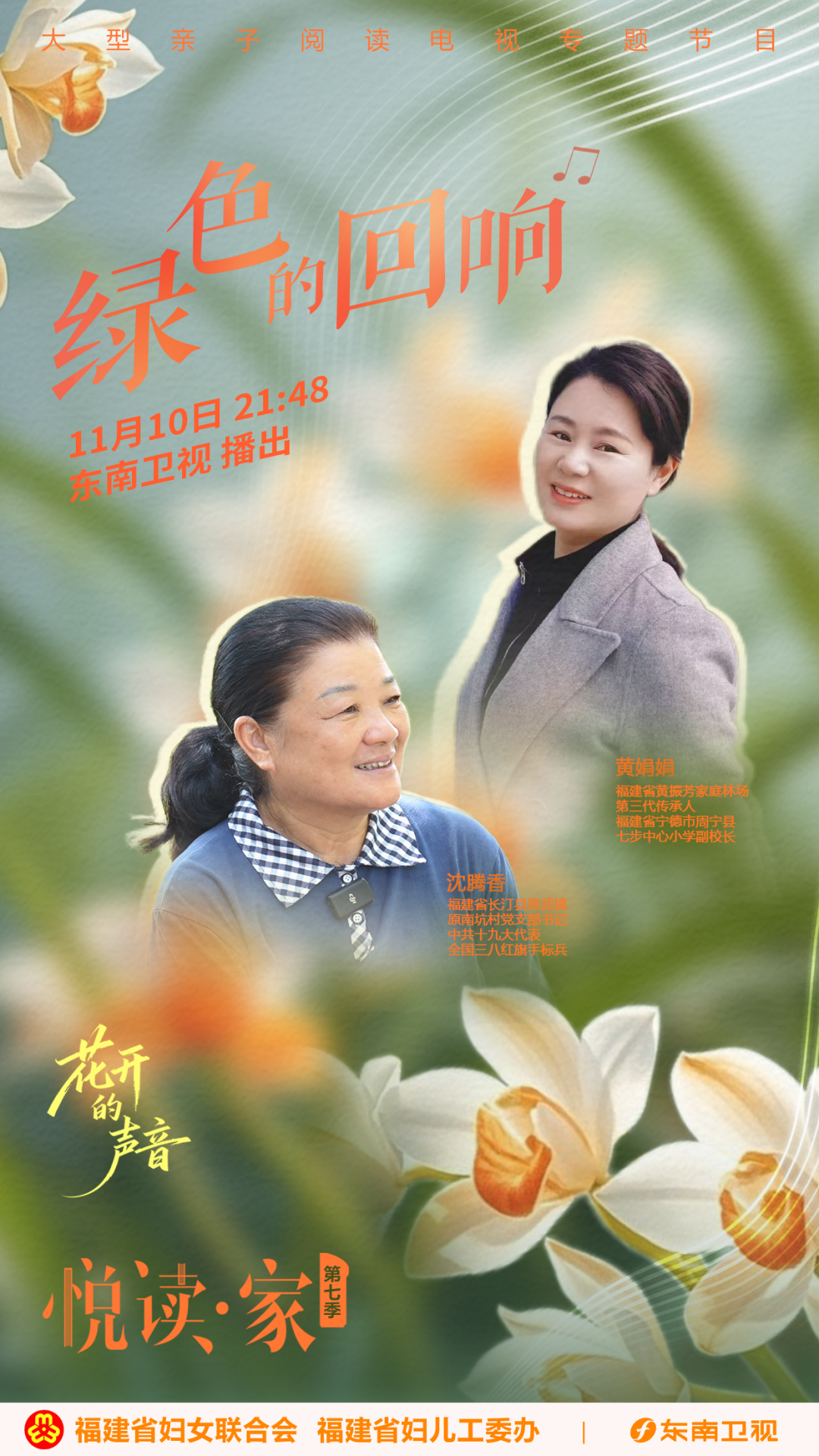 《悦读·家》第七季 为了深入贯彻习近平总书记在全球妇女峰会开幕式的重要讲话和全球妇女峰会精神,习近平总书记关于妇女儿童和妇联工作、关于家庭家教家风建设的重要论述,以进一步全面深化改革为动力,团结带领福建全省广大妇女在推进中国式现代化新实践中展现巾帼担当、贡献巾帼力量,由福建省妇女联合会、福建省妇儿工委办和福建省广播影视集团联合推出的大型亲子阅读电视专题节目《悦读·家》第七季温暖开播。 本季节目以“花开的声音”为主题,自11月3日起每周一、周三晚在东南卫视黄金时段播出。 当福建的森林覆盖率以66.8%的成绩稳居全国第一,且连续46年领跑全国时,你是否好奇:这片望不到边的绿,是怎么“长”出来的?东南卫视11月10日晚21:48《悦读·家》第七季,两个跨越地域、接续世代的女性故事,藏着福建生态变迁的滚烫密码。