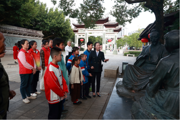 活动当天,学生代表在 “爱心妈妈”们的陪伴下共同参观了朱子文化园、南溪书院。在“半亩方塘”前,讲解员生动解读了“问渠那得清如许,为有源头活水来”的深刻内涵,鼓励同学们要像朱熹一样勤奋好学、不断汲取知识养分,用学习改变命运。随后,同学们在“爱心妈妈”们的帮助下,一起体验了朱熹手书的对联拓印,沉浸式感受传统文化的独特魅力。“我要像朱熹先生那样努力学习,做一个有文化、有担当的人!”学生代表小林(化名)兴奋地说。“爱心妈妈”们也满心感慨:“这样的文化体验太有意义了,既给孩子的课余生活添了彩,又让他们在不知不觉中受传统文化熏陶,对品格养成、成长发展都有很大的帮助。”