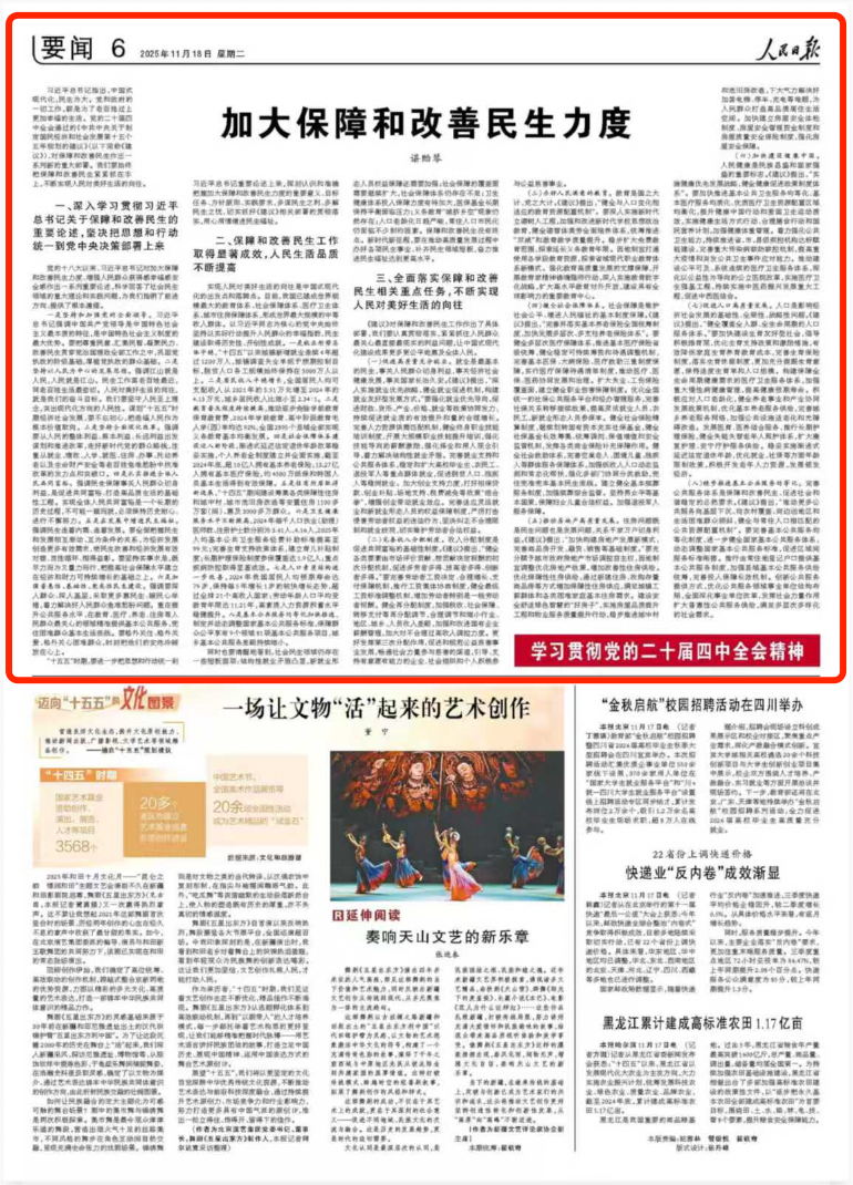 全文如下—— 习近平总书记指出,中国式现代化,民生为大。党和政府的一切工作,都是为了老百姓过上更加幸福的生活。党的二十届四中全会通过的《中共中央关于制定国民经济和社会发展第十五个五年规划的建议》(以下简称《建议》),对保障和改善民生作出一系列新的重大部署。我们要始终把保障和改善民生紧紧抓在手上,不断实现人民对美好生活的向往。 一、深入学习贯彻习近平总书记关于保障和改善民生的重要论述,坚决把思想和行动统一到党中央决策部署上来 党的十八大以来,习近平总书记对加大保障和改善民生力度、增强人民群众获得感幸福感安全感作出一系列重要论述,科学回答了社会民生领域的重大理论和实践问题,为我们指明了前进方向、提供了根本遵循。 一是坚持和加强党的全面领导。习近平总书记强调中国共产党领导是中国特色社会主义最本质的特征,是中国特色社会主义制度的最大优势。要把尊重民意、汇集民智、凝聚民力、改善民生贯穿党治国理政全部工作之中,巩固党执政的阶级基础,厚植党执政的群众基础。二是坚持以人民为中心的发展思想。强调江山就是人民,人民就是江山。民生工作离老百姓最近,同老百姓生活最密切。人民对美好生活的向往,就是我们的奋斗目标。我们要坚守人民至上理念,突出现代化方向的人民性。谋划“十五五”时期经济社会发展,要不忘初心,把造福人民作为根本价值取向。三是坚持全面深化改革。强调要从人民的整体利益、根本利益、长远利益出发谋划和推进改革,走好新时代党的群众路线,注重从就业、增收、入学、就医、住房、办事、托幼养老以及生命财产安全等老百姓急难愁盼中找准改革的发力点和突破口。四是扎实推进全体人民共同富裕。强调民生保障事关人民群众切身利益,是促进共同富裕、打造高品质生活的基础性工程。实现全体人民共同富裕是一个长期的历史过程,不可能一蹴而就,必须保持历史耐心、进行不懈努力。五是在发展中增进民生福祉。强调民生连着内需、连着发展。要全面把握民生和发展相互牵动、互为条件的关系,为经济发展创造更多有效需求,使民生改善和经济发展有效对接、良性循环、相得益彰。要坚持实事求是,既尽力而为又量力而行,把提高社会保障水平建立在经济和财力可持续增长的基础之上。六是加强普惠性、基础性、兜底性民生建设。强调要深入群众、深入基层,采取更多惠民生、暖民心举措,着力解决好人民群众急难愁盼问题。重在提升公共服务水平,在教育、医疗、养老、住房等人民群众最关心的领域精准提供基本公共服务,兜住困难群众基本生活底线。要格外关注、格外关爱、格外关心困难群众,时刻把他们的安危冷暖放在心上。 “十五五”时期,要进一步把思想和行动统一到习近平总书记重要论述上来,深刻认识和准确把握加大保障和改善民生力度的重要意义、目标任务、方针原则、实践要求,多谋民生之利、多解民生之忧,切实抓好《建议》相关部署的贯彻落实,用心用情增进民生福祉。 二、保障和改善民生工作取得显著成效,人民生活品质不断提高 实现人民对美好生活的向往是中国式现代化的出发点和落脚点。目前,我国已建成世界规模最大的教育体系、社会保障体系、医疗卫生体系、城市住房保障体系,形成世界最大规模的中等收入群体。以习近平同志为核心的党中央始终坚持以实际行动提升人民群众的幸福指数,民生建设取得历史性、开创性成就。一是就业形势总体平稳,“十四五”以来城镇新增就业连续4年超过1200万人,城镇调查失业率低于预期控制目标,脱贫人口务工规模始终保持在3000万人以上。二是居民收入平稳增长,全国居民人均可支配收入从2021年的3.51万元增至2024年的4.13万元,城乡居民收入比缩小至2.34∶1。三是教育普及程度持续提高,推动逐步免除学前教育保育教育费,2024年学前教育、高中阶段教育毛入学(园)率均达92%,全国2895个县域全部实现义务教育基本均衡发展。四是社会保障体系建设迈入新阶段,渐进式延迟法定退休年龄改革稳妥实施,个人养老金制度建立并全面实施,截至2024年底,超10亿人拥有基本养老保险,13.27亿人拥有基本医疗保险,约4500万低保和特困人员基本生活得到有效保障。五是住有所居取得新进展,“十四五”期间建设筹集各类保障性住房和城中村、城市危旧房改造等安置住房1100多万套(间)、惠及3000多万群众。六是卫生健康服务水平不断提高,2024年每千人口执业(助理)医师数、注册护士数分别为3.61人、4.16人,2025年人均基本公共卫生服务经费补助标准提高至99元;完善生育支持政策体系,建立育儿补贴制度;长期护理保险制度参保覆盖达1.9亿人;重点疾病防控取得显著成效。七是人口素质结构进一步改善,2024年我国居民人均预期寿命达79岁,保持每5年增长1岁的较快增长态势,超过全球21个高收入国家;劳动年龄人口平均受教育年限达11.21年,高素质人力资源积蓄水平稳健提升。八是基本公共服务均等化加快推进,制定并动态调整国家基本公共服务标准,保障群众公平享有9个领域81项基本公共服务项目,城乡基本公共服务差距持续缩小。 同时也要清醒地看到,社会民生领域仍存在一些短板弱项:结构性就业矛盾凸显,新就业形态人员权益保障还需要加强;社会保障的覆盖面需要继续扩大,