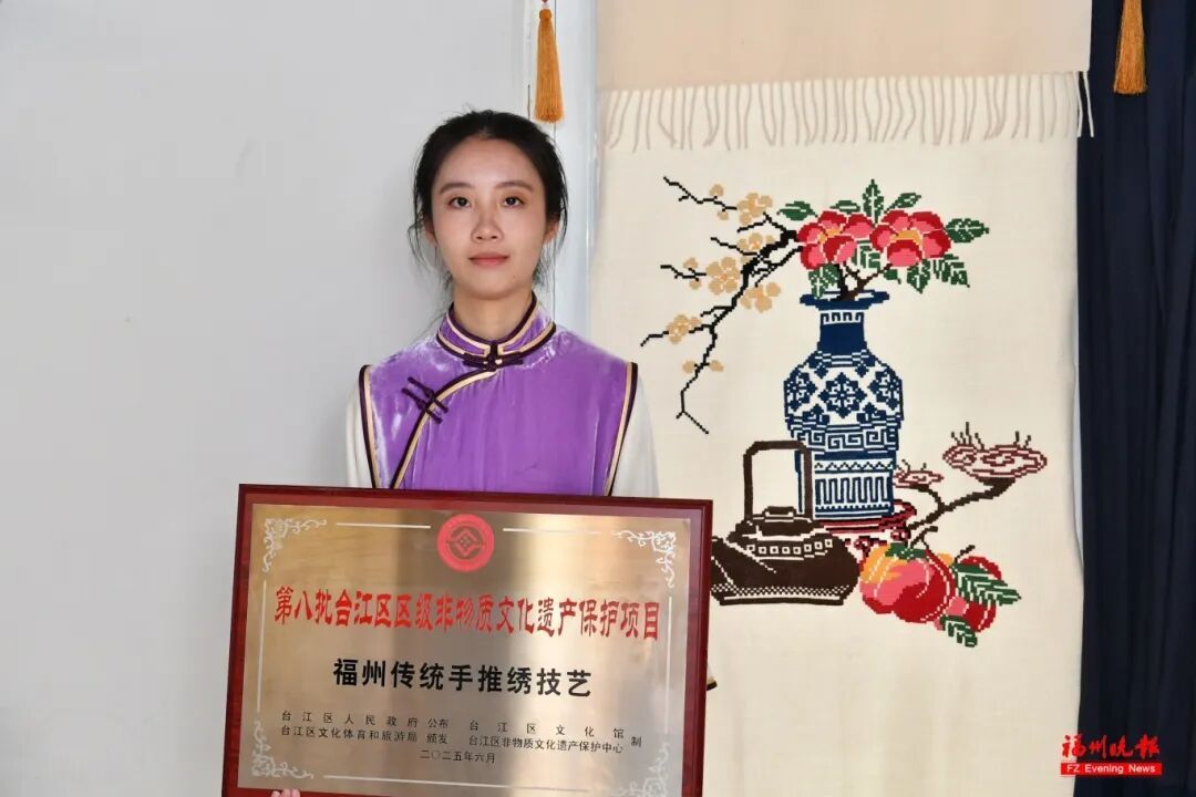 今年,福州传统手推绣技艺成功入选第八批台江区区级非物质文化遗产保护项目。为了让这门技艺得到更好的传承,目前林歆荧正与母亲林钰苹合力筹备出版手推绣技艺专著,系统整理家族几代人的经验与创新成果,填补这一领域的文献空白。