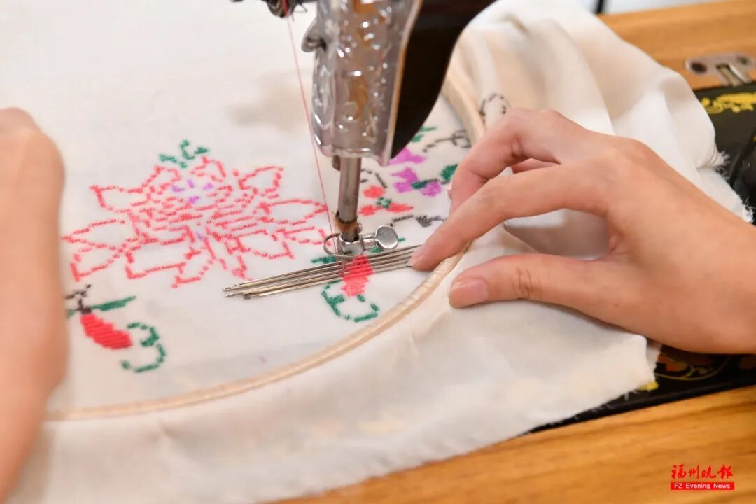 “00后”福州姑娘的老手艺 福州传统手推绣技艺是一种在缝纫机上施展的精细工艺,工序繁复而严谨,更在传统刺绣的基础上独创出18种契合缝纫机特性的针法。要驾驭这门技艺,绣娘不仅需练就“明察秋毫”的眼力,更得具备不俗的审美素养,精准把控色彩调和与构图韵律。