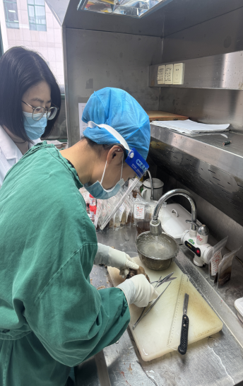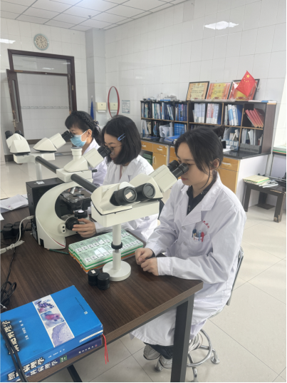 术中快速病理诊断是病理的“急诊”,需要病理医生又快又准确地给出病理报告,从而决定患者后续的手术方式,因此要求病理医生既要有丰富的经验,还要有重压之下迅速做出决断的能力。而柳秋月经常在这样的重压下给足手术医生做下一步计划的信心。今年5月,手术室送来一份妇科卵巢的术中冰冻,她带领科室团队迅速进入状态,通力合作:取样、切片、染色。在显微镜下,她熟练操作,仅用不到30分钟时间就得到精准结果:卵巢黏液腺癌。妇科手术医生看到这速度,称赞道:“医院这术中冰冻速度真快,今天不用很晚下台了,真好。” 昌吉市人民医院病理科在柳秋月的带领下,逐渐完成了蜕变。昌吉市人民医院病理科主任吕玉红说:“柳主任来我们科室半年,给我们带来了宝贵的诊断经验,解决了许多疑难病例,精准指导了后续的治疗,得到了临床医生的一致好评。” 师徒配合,人才梯队的薪火传承 在援疆工作中,柳秋月深知要实现医院病理科的长远发展,人才是核心竞争力,而培养本地病理人才是当前的首要任务。因此,她积极参与医院“师带徒”培养计划,与科室年轻医生小代结成师徒对子。小代是临床专业的毕业生,对病理专业的了解较少,柳秋月知道她的情况后,认真负责手把手地教她取材、阅片等基本操作技能,定期开展业务学习,由浅入深,耐心解答她在工作过程中遇到的所有问题。经过她一步一步地带教,一遍一遍地教学,目前小代已经可以独立取材,诊断典型的病例。