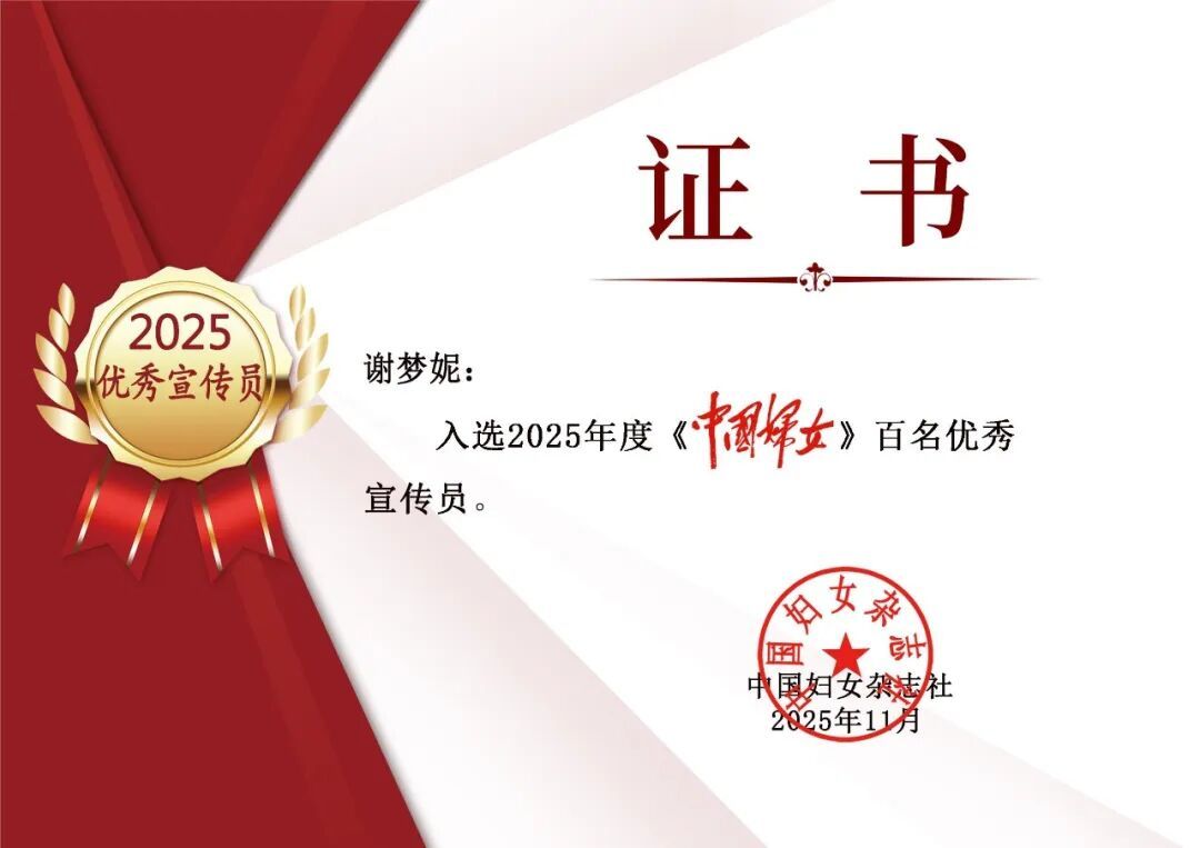 近日,中国妇女杂志社发布2025年度《中国妇女》杂志宣传舆论阵地建设光荣榜。对入选榜单单位及优秀宣传员予以通报表扬。福建省妇联宣传部荣登2025年度《中国妇女》宣传舆论阵地建设先锋榜。
