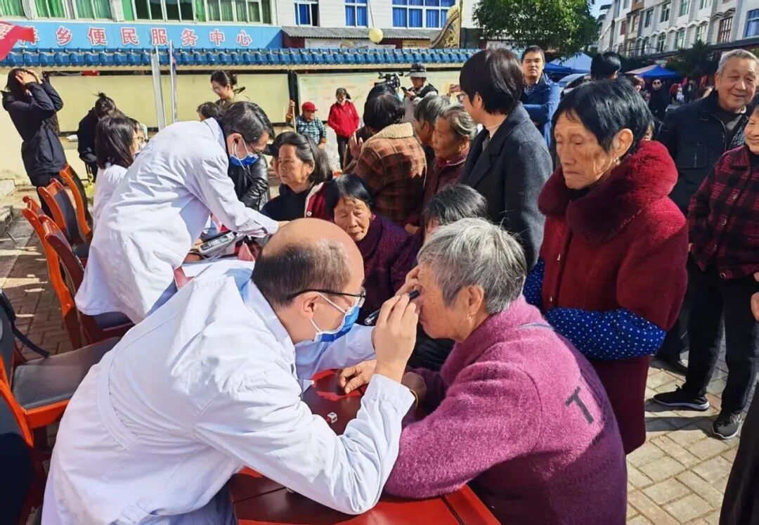 省妇幼保健院眼科负责人陈金国为妇女群众检查视力。