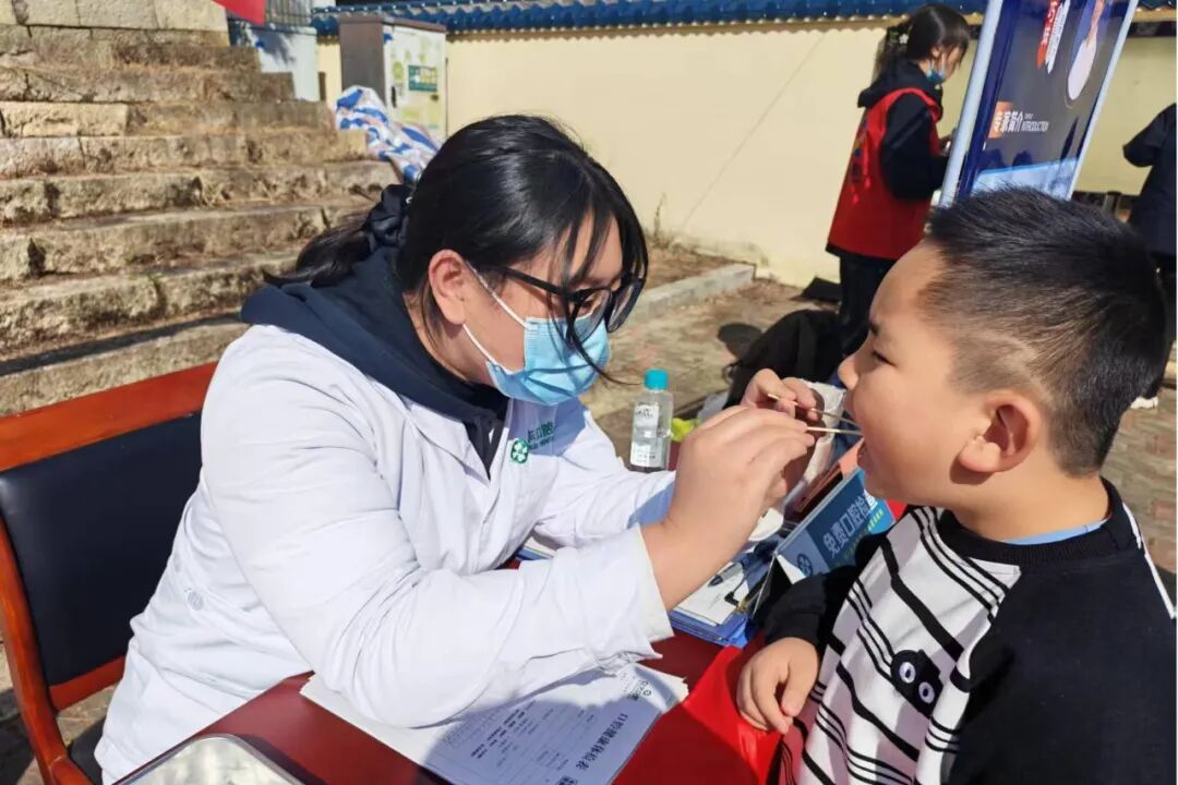 福建亚华口腔医院综合科医师岳丫奇为儿童检查口腔卫生,并传授保护牙齿的知识。