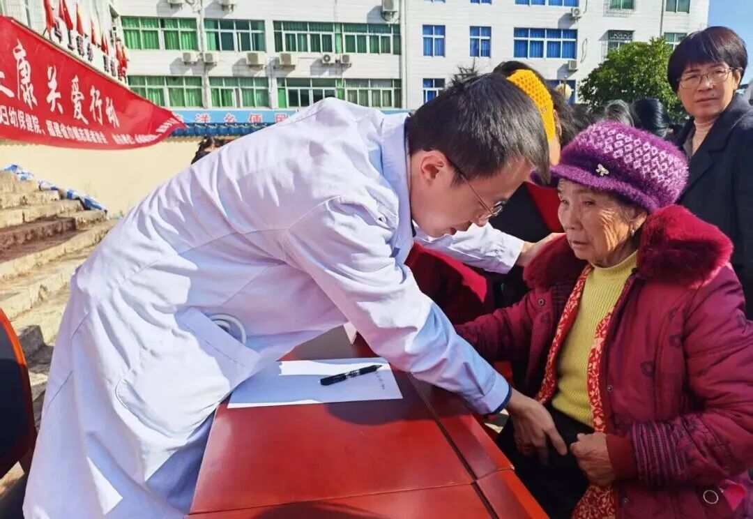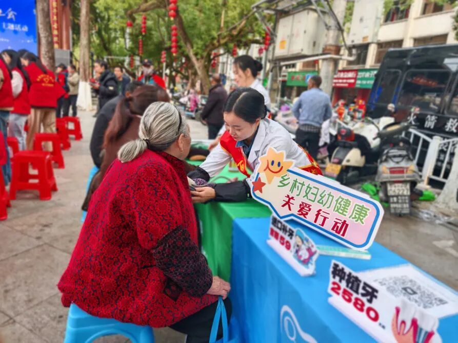 三明市宁化县妇联联合佰岁堂医药连锁公司开展乡村妇幼健康关爱行动,为过往妇女提供免费血压测量和一对一健康咨询等公益服务。