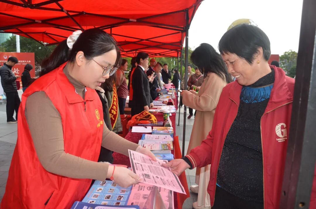 泉州市永春县妇联组织巾帼志愿者发放普法宣传资料,切实提升群众的法治意识和维权能力。