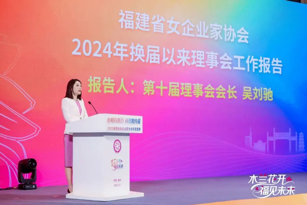 活动期间,还召开了第十届第二次会员代表大会暨第十届理事会第二次会议,王晶在会上作了《厚德载物》主题报告;举办了“她创·臻品”芳华雅集展,集中展示福建女企业家的优质创新成果,全方位展现了新时代福建女企业家的创新实力与产业活力。在“她韵·绚彩”联谊活动上,女企业家们以自编自演的原创节目诠释奋斗,为活动注入了满含力量与温度的独特活力。