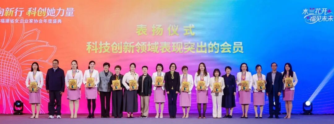 表扬科技创新领域表现突出的会员 活动现场表扬了一批在科创领域表现突出的和对协会工作做出贡献的团体和个人。她们用智慧和实干将前沿科技转化为发展动能,以数字技术布局新赛道,以智转数改推进产业迭代,以绿色低碳推进企业降本增效,共同书写了促进新时代民营经济强省战略的“她答卷”。