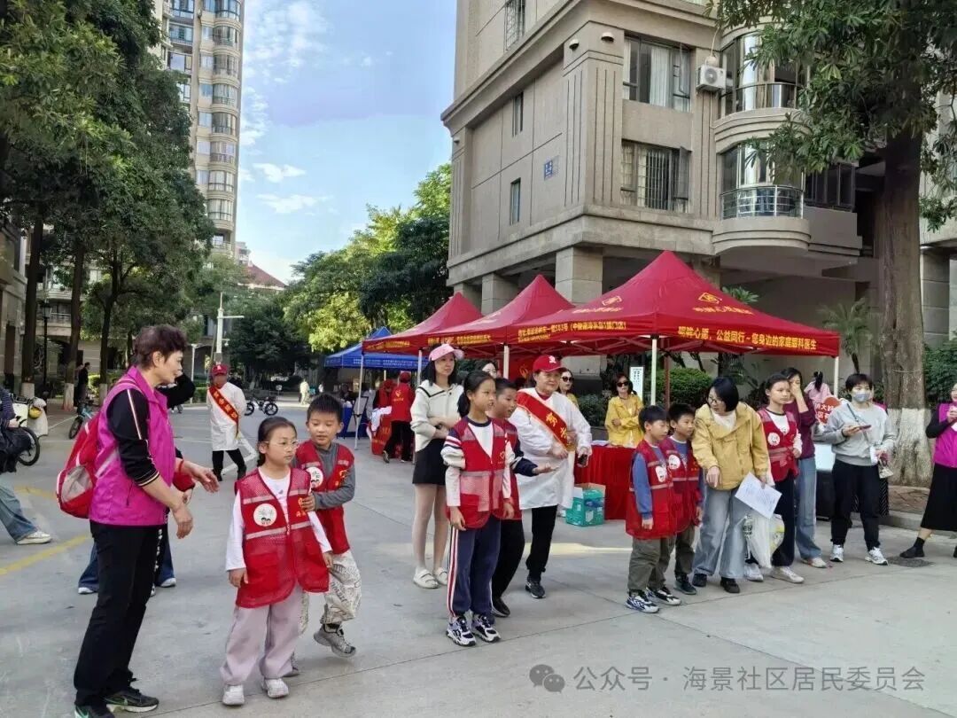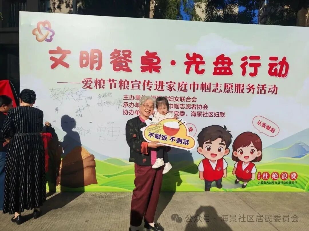 省妇联在厦门市海景社区开展“文明餐桌·光盘行动”——爱粮节粮宣传进家庭巾帼志愿服务活动。巾帼志愿者引导孩子们在“翻滚南瓜赛”闯关中加深对珍惜粮食的理解、在“文明餐桌”承诺墙前许下节约粮食的文明承诺、在纸上用彩笔描绘心中的“节约画卷”。