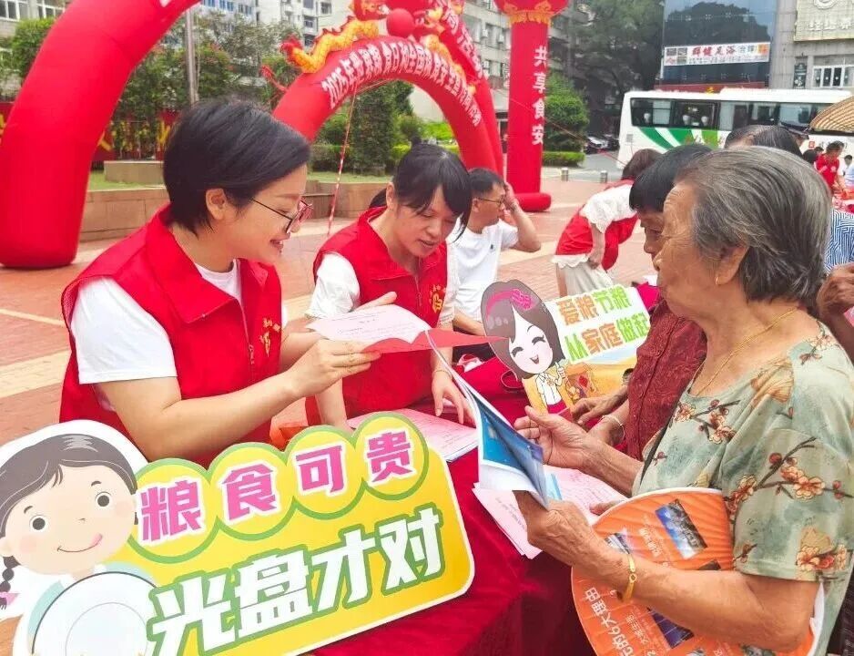 福州市惠容微家巾帼志愿服务队向居民广泛宣传爱粮节粮的重要性。