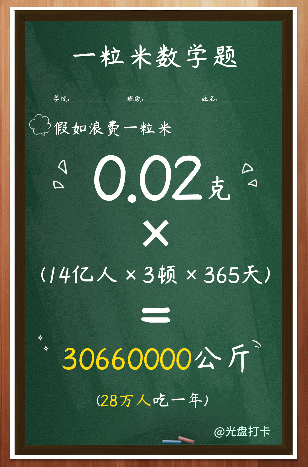 而另一方面,聚沙成塔,如果每人每餐只是浪费了小小一粒米,那么一年下来会怎样?