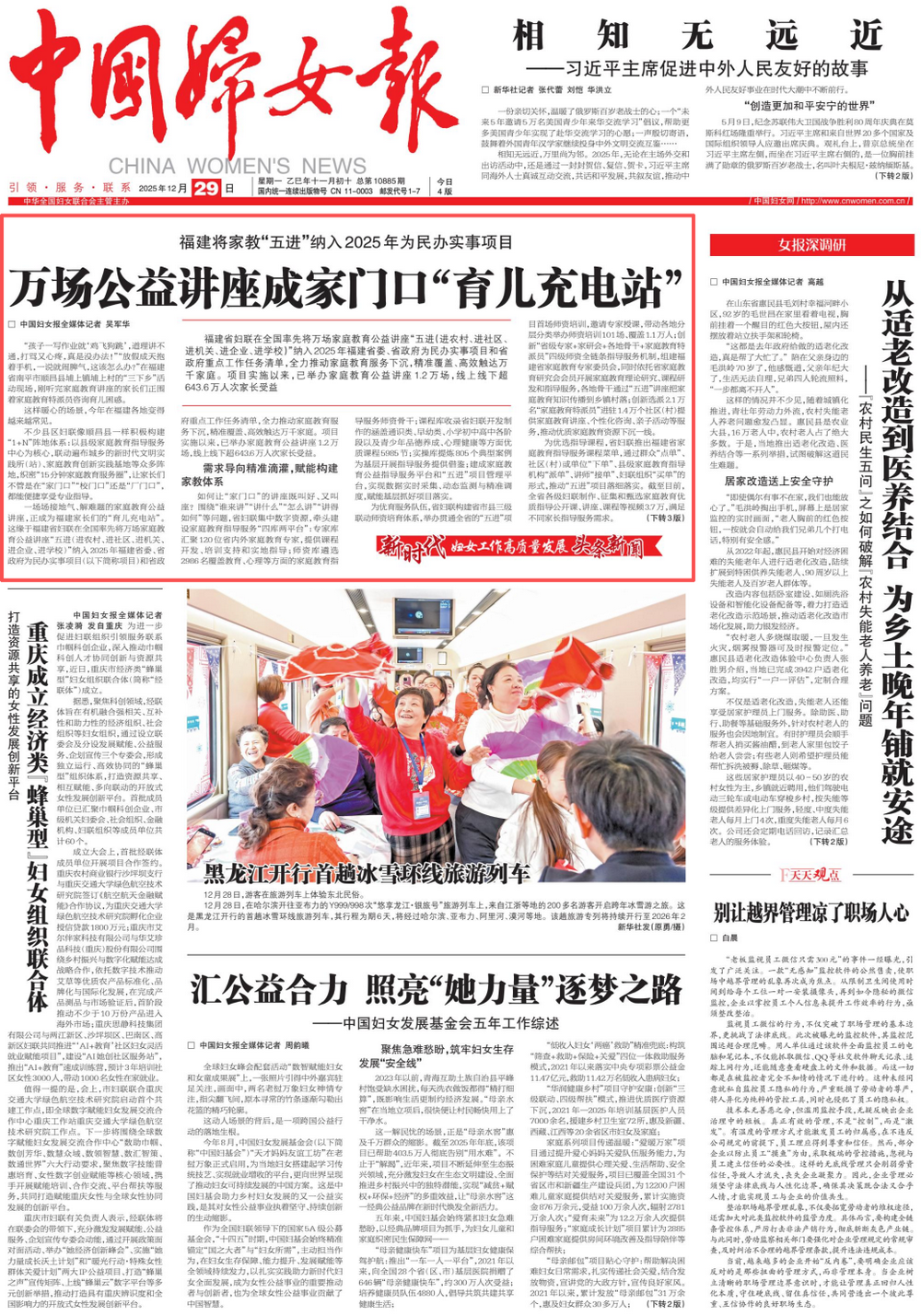 12月29日,中国妇女报头版头条刊发《万场公益讲座成家门口“育儿充电站”