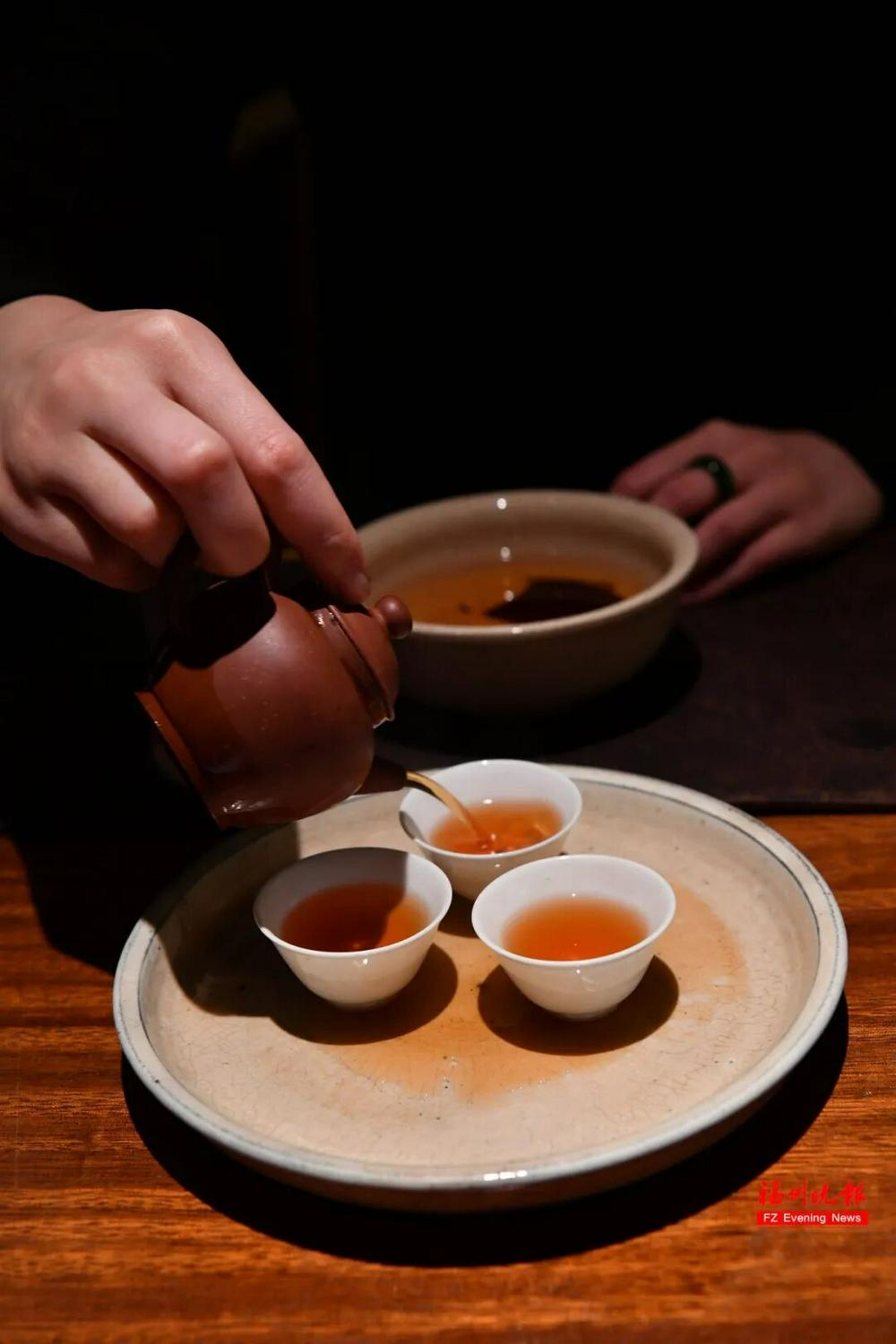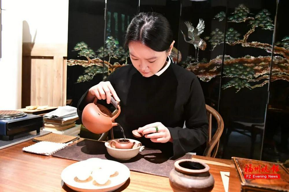 一杯“启蒙茶” 打开传承之门 “不急,先来喝一杯茶吧。”近日,记者走进台江区洪家茶非遗传习所,身着一袭黑色工夫茶服的洪卉,语调温婉柔和,神情专注而从容,举手投足间满是娴雅温润的气质,让人不自觉沉浸在这份安然的茶韵之中。 “反复泡同一款茶,有时会觉得烦躁。但是当你愿意放慢节奏,就会发现茶叶在水温、出汤、呼吸之间不断变化。”洪卉说道。她回忆,七年前那泡启蒙茶,让她首度真切体悟到老茶人常说的“岩骨花香”。当她掀开盖碗的刹那,那缕裹挟着山川灵秀的香气漫入鼻息,那份清润醇厚的质感,在她的记忆深处深深镌刻,未曾散去。