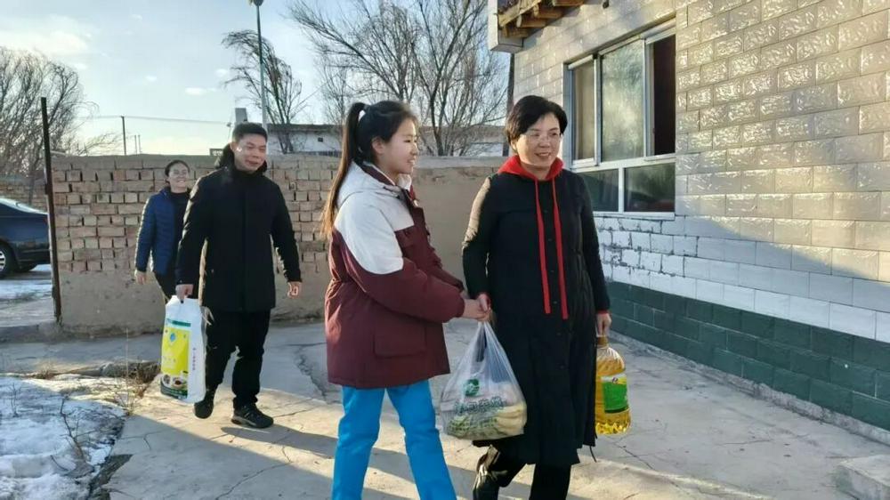 此后,岳英常利用节假日,带上生活用品前往家中探望,悉心照料;在学校,她耐心与小古丽谈心,鼓励她树立志向。她还积极搭建家校沟通桥梁,与孩子姑姑保持联系,及时了解动态并反馈在校情况。2022年11月4日,冒着零下11摄氏度的风雪,她带着新衣、棉靴和零食前去探望。小古丽看到礼物时喜极而泣,那份久违的母爱般关怀,让曾经倔强防备的孩子彻底敞开心扉。 同年11月18日,经她积极推动,福建漳州援疆分指挥部与木垒三小共同组织了“大手拉小手”结对活动。援疆干部人才与家庭困难学生结对认亲,现场发放助学金与爱心书包。小古丽作为学生代表发言,她说:“这份帮助不仅是物质的支援,更是精神的激励。我们会怀揣感恩之心,刻苦学习,回报社会。”
