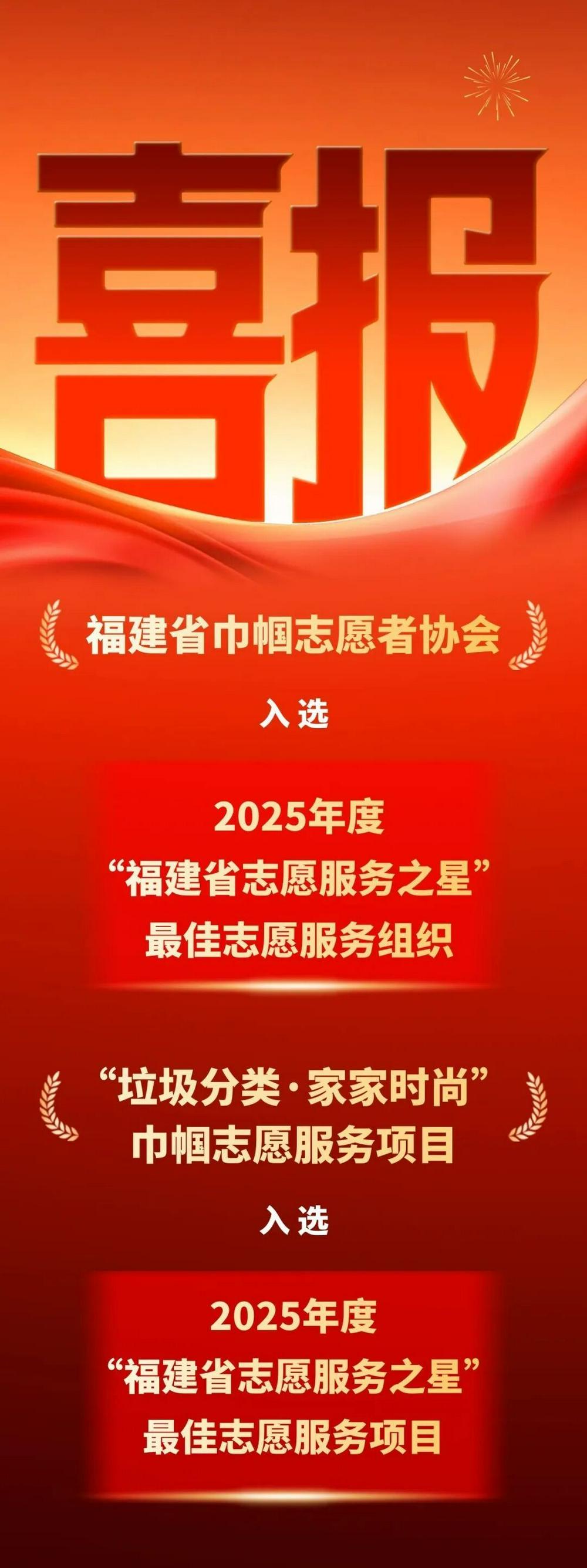 福建省巾帼志愿者协会 入选“最佳志愿服务组织” “垃圾分类·家家时尚” 巾帼志愿服务项目 入选“最佳志愿服务项目” 该项目曾获得“八闽志愿行 建功新时代” 2025年福建省志愿服务项目大赛金奖 接下来,闽姐姐带您 走近省巾帼志愿者协会 了解这支传递温暖 绽放巾帼风采的志愿队伍 福建省巾帼志愿者协会成立于2010年12月,是全国妇联系统首个省级巾帼志愿者协会,省级5A级非营利性社会组织。协会现有会员200名,协会分会(专业系统服务队)24个(支)、服务站点19个,推动组建了家政服务、社区助老等巾帼志愿服务队伍1.96万支,网上注册巾帼志愿者384万人。涌现全国学雷锋志愿服务、全国巾帼志愿服务“四个最美”等先进典型29人次、省级先进典型192人次。连续两年蝉联全国巾帼志愿服务征集展示活动获奖总数第一,福建省巾帼志愿服务工作情况被写进全国妇联巾帼志愿服务蓝皮书,全国妇联将我省列为巾帼志愿服务工作试点省。 省巾帼志愿者协会的 工作秘诀是什么? “三个创新”很亮眼! 一是创新制度设计 协会主动融入党委政府工作大局,积极参与《福建省志愿服务条例》修改制订,在全国妇联系统率先成体系出台《福建省巾帼志愿服务工作实施办法(试行)》等制度文件。推动巾帼志愿服务工作实绩考核纳入省委、省政府实施乡村振兴战略目标任务,在全国妇联系统率先建立巾帼志愿服务考核机制,制定实绩考核指标,明确评分标准,推动各地党委政府加大对巾帼志愿服务工作的指导力度和资金支持。强化部门协同,与省委文明办、省住建厅、省司法厅等20多家单位共同策划实施巾帼志愿服务项目。三年来,累计争取巾帼志愿服务项目资金855万元。