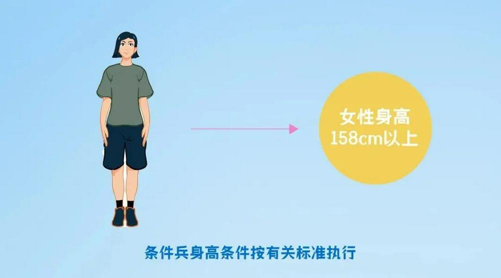 身体基本要求 ○ 身高 女性身高158cm以上,合格。 条件兵身高条件按有关标准执行。