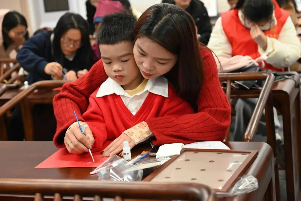 廉洁金箔画 DIY 环节则成为亲子互动的温馨时刻。大家秉持“一描一贴间,廉洁入心田”的理念,在体验传统金箔艺术的过程中,亲手将抽象的廉洁理念转化为具象的艺术作品,让廉洁种子在指尖流转与心灵共鸣中生根发芽。