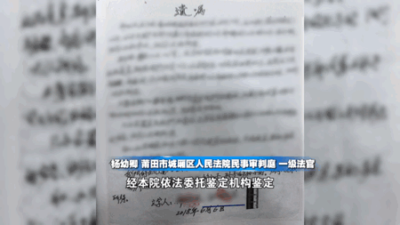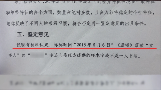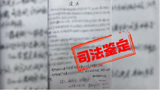 经鉴定,遗嘱不是本人亲笔书写。开庭审理期间,这份遗嘱因真实性存疑,最终未被法院采纳。