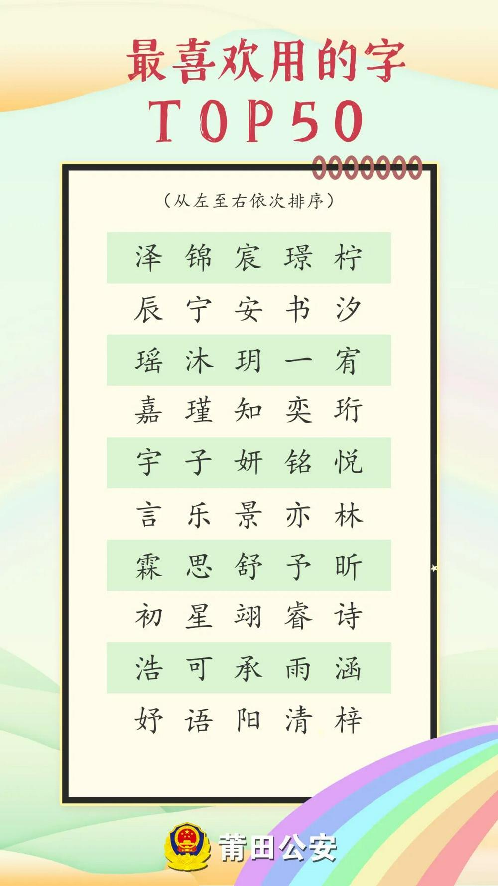 最喜欢用的字 2025年 “泽”字 在福州、莆田新生儿名字中 使用频率最高